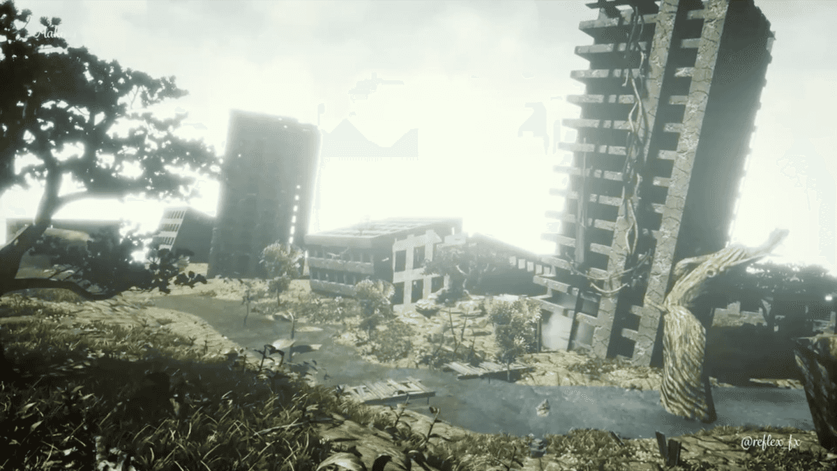 The scene is inspired by “City Ruins” from Nier Automata.